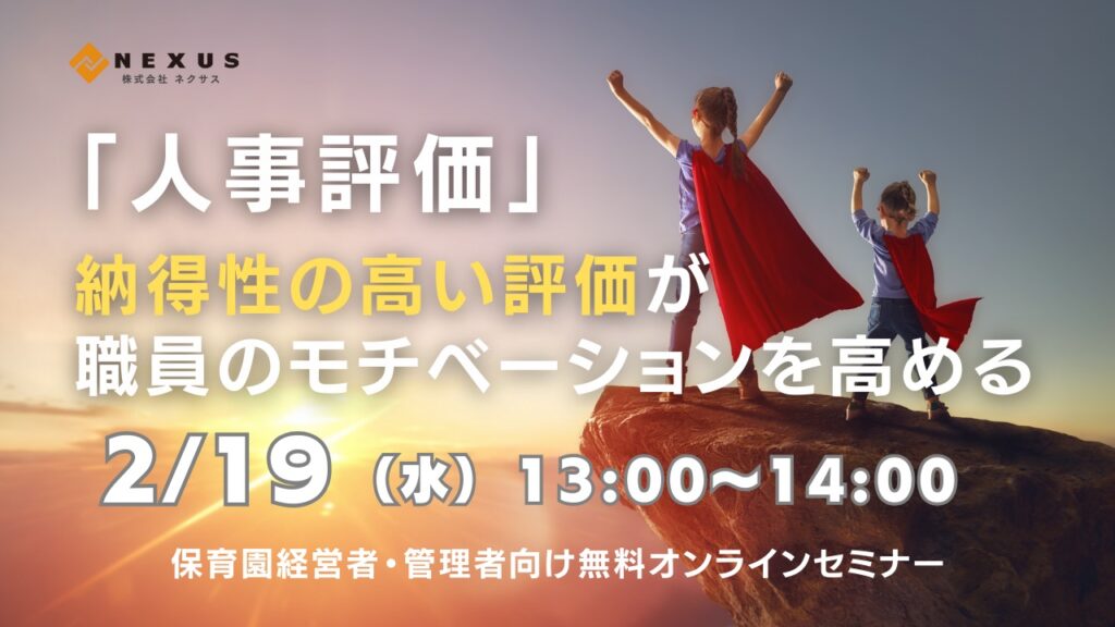 2/19(水)保育園経営者・管理者向け無料セミナー|「人事評価」納得性の高い評価が職員のモチベーションを高める