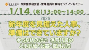 12/24(水)その評価、今年度も“形だけ”で終わっていませんか?〜年度の節目に見直したい、保育施設の人事評価とキャリアパス〜